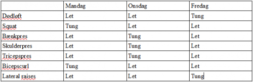 Ralle Posted December 28, 2012 Author Report Share Posted December 28, 2012 Squat 1 x15 rep x 132,5 kgSkulderpres 1 x 15 rep x 72,5 kgBicepscurl 1 x 15 rep x 67,5 kgTricepspres 1 x 15 rep x 62,5 kgDødløft 1 x 15 rep x 210 kgLateral raises 1 x 20 rep x 15 kg (foran, til siden og bagpå) Quote Link to comment Share on other sites More sharing options...