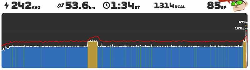 Davai Posted March 24, 2020 Author Report Share Posted March 24, 2020 Det kører ikke så godt med at få trænet regelmæssigt, jeg var en tur på hometraineren i går efter en pause på fire dage. Jeg havde tænkt mig at køre en en rolig tur i zone 2 for at komme i gang igen, men det var også fristende at tage fat på en af de omgang intervaller, som jeg skippede i sidste uge, som bød på 5x10 minutter i sweetspot. Jeg fik meldt mig til et arrangement på Zwift hvor jeg ville køre mine intervaller. Da første sæt var ved at være overstået blev jeg fristet til at holde wattene igennem resten af zwift ruten. Det blev til 1 time og 12 minutter med 305 watt i gennemsnit, en form for personlig rekord. Det er nok ikke det mest fornuftige at gøre i forhold til at få trænet regelmæssigt, da jeg sikkert ender med at skippe den næste træning på grund af træthed. Quote Link to comment Share on other sites More sharing options...